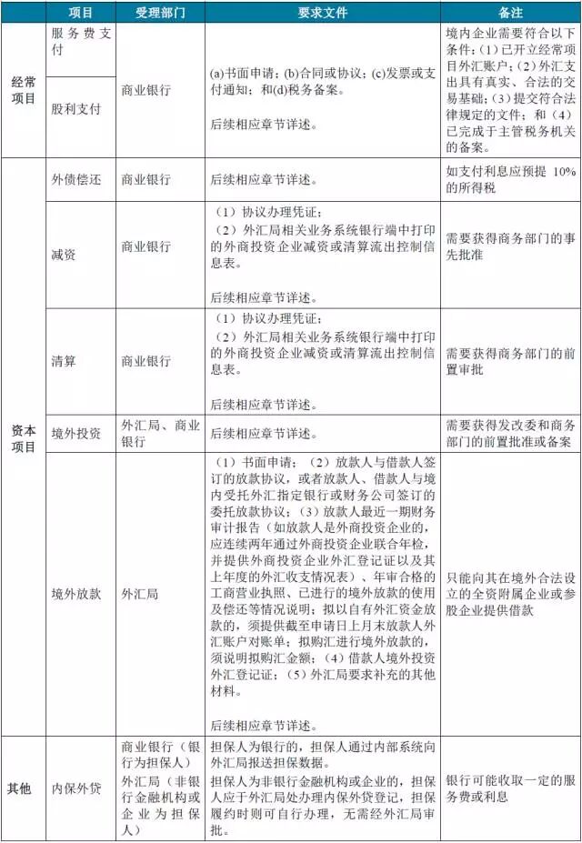 二、经常项目项下的付汇 通过经常项目下的服务费支付或企业股利支付,境内企业可以将人民币兑换成美元或其他外币汇出境外。为实现上述目的,境内企业需要符合以下条件: