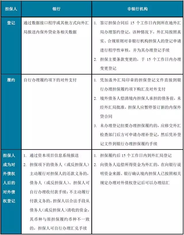 我们在下图针对银行和非银行机构担任内保外贷中的担保人时的不同规定做了简单总结对比: