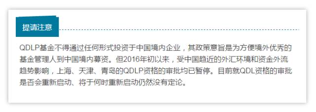 2012年4月,上海市金融服务办公室、上海市商务委员会、上海市工商行政管理局共同发布《关于本市开展合格境内有限合伙人试点工作的实施办法》,首次在国内启动合格境内有限合伙人试点工作(Qualified Domestic Limited Partner,“QDLP资格”)的审批,允许注册于境外的对冲基金通过申请QDLP资格在中国境内设立投资基金管理企业(“QDLP管理企业”)、由QDLP管理企业在中国境内发起设立可面向境内合格投资者募集人民币资金的投资基金(“QDLP基金”),并将所募集的资金投资于海外市场。